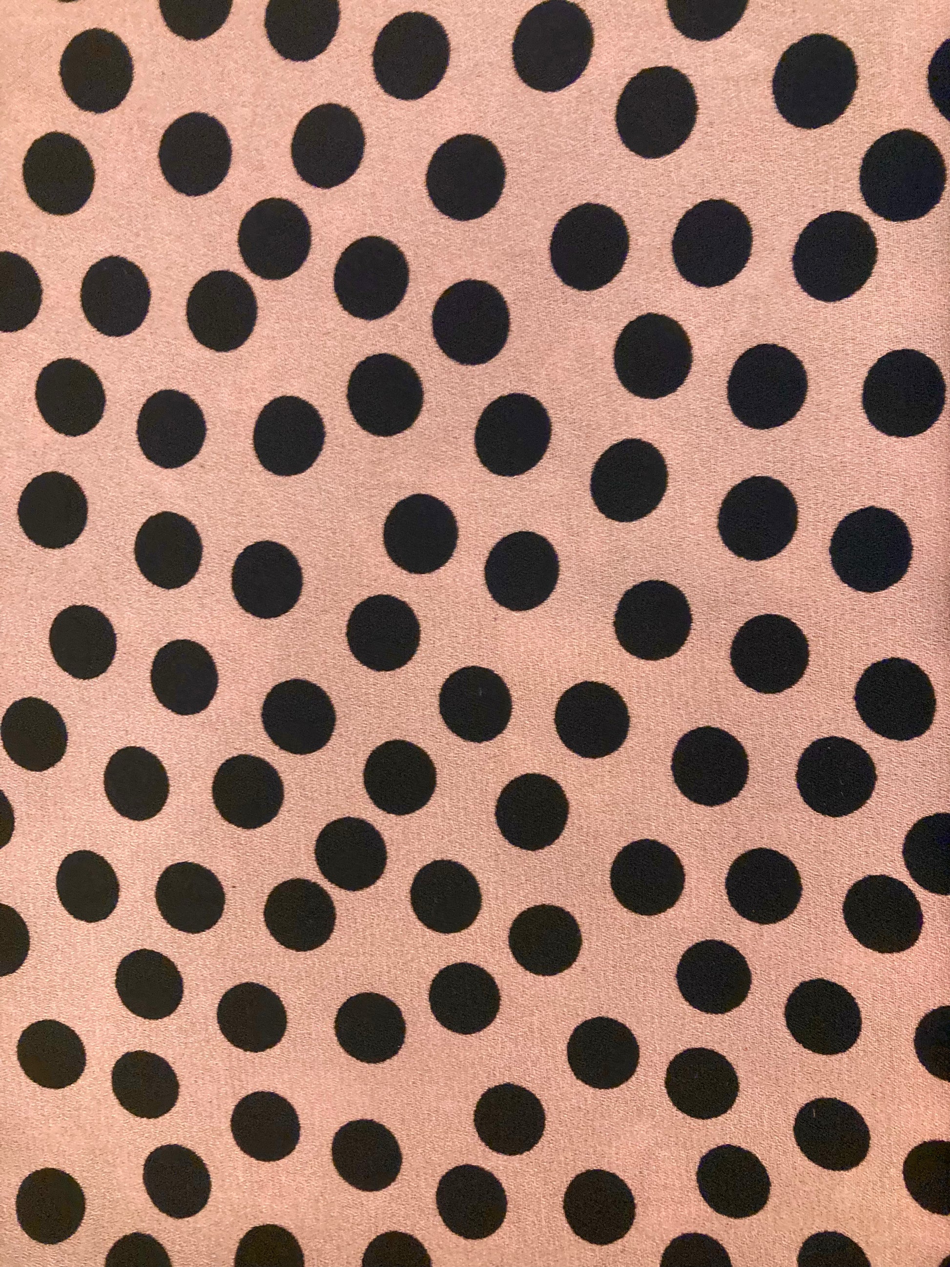 -crêpe polyester imprimé pois noirs fond vieux rose